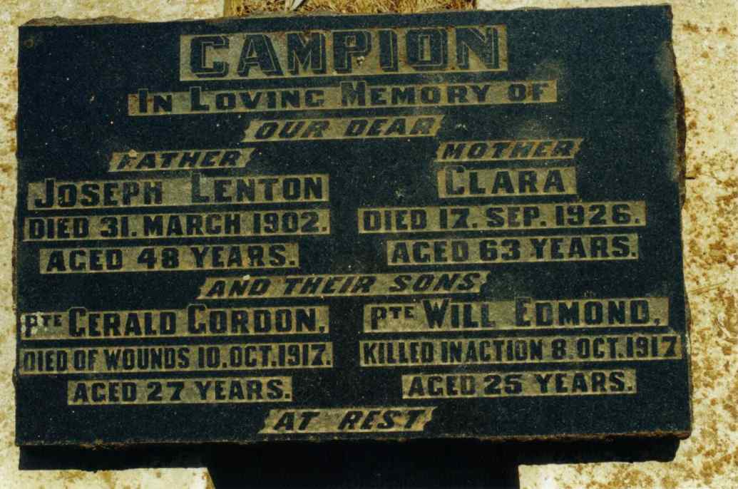 | Joseph Lenton Campion | 31st March 1902 | Curramulka | Disease of Heart | ||